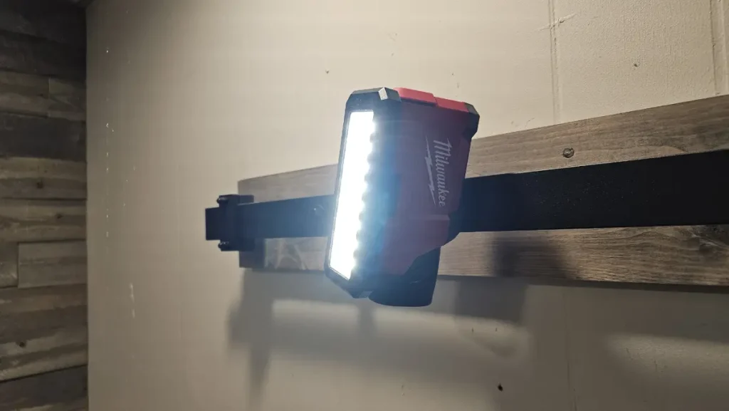 The Milwaukee ROVER Flood Light has two power settings that put off some serious lumens in your workspace. I just spent an entire day working under bathroom sinks and the ROVER Light was much more useful than using my phone or something corded to illuminate my surroundings. In fact, I actually found myself using the low setting under the sink to reduce some of the brightness on my eyes and conserve battery life.